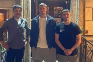 昨天,这位前锋在罗马最著名的爱尔兰酒吧之一“学者酒廊”观看了匈牙利对阵爱尔兰的比赛。埃文·弗格森在酒吧外与两名工作人员合影的瞬间被永久定格,工作人员随即在他们的社交媒体账号上发布了这张照片。